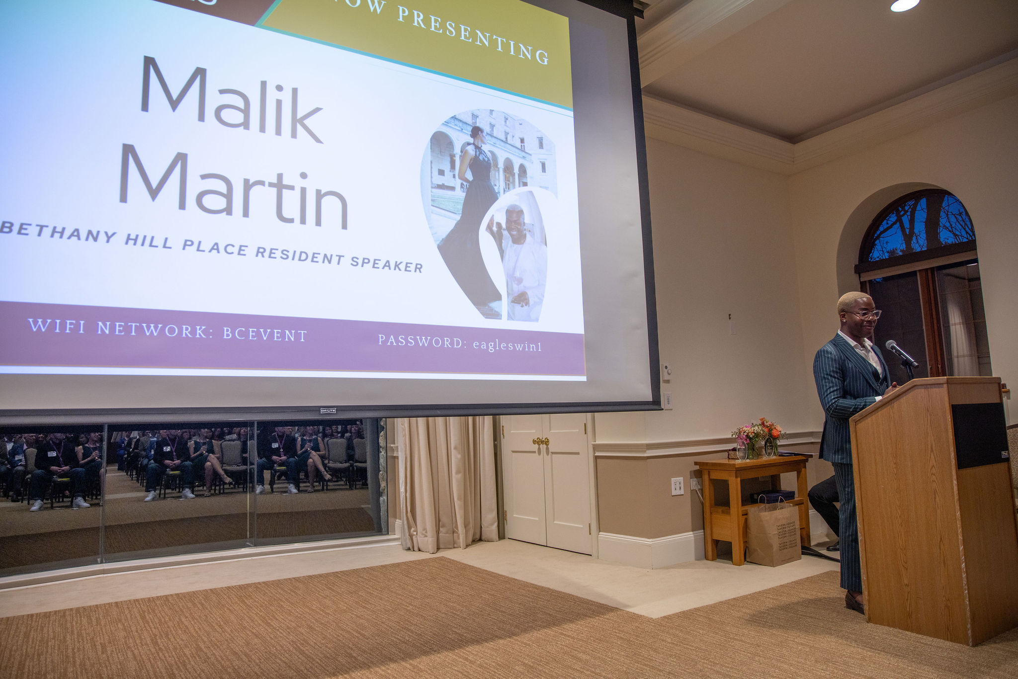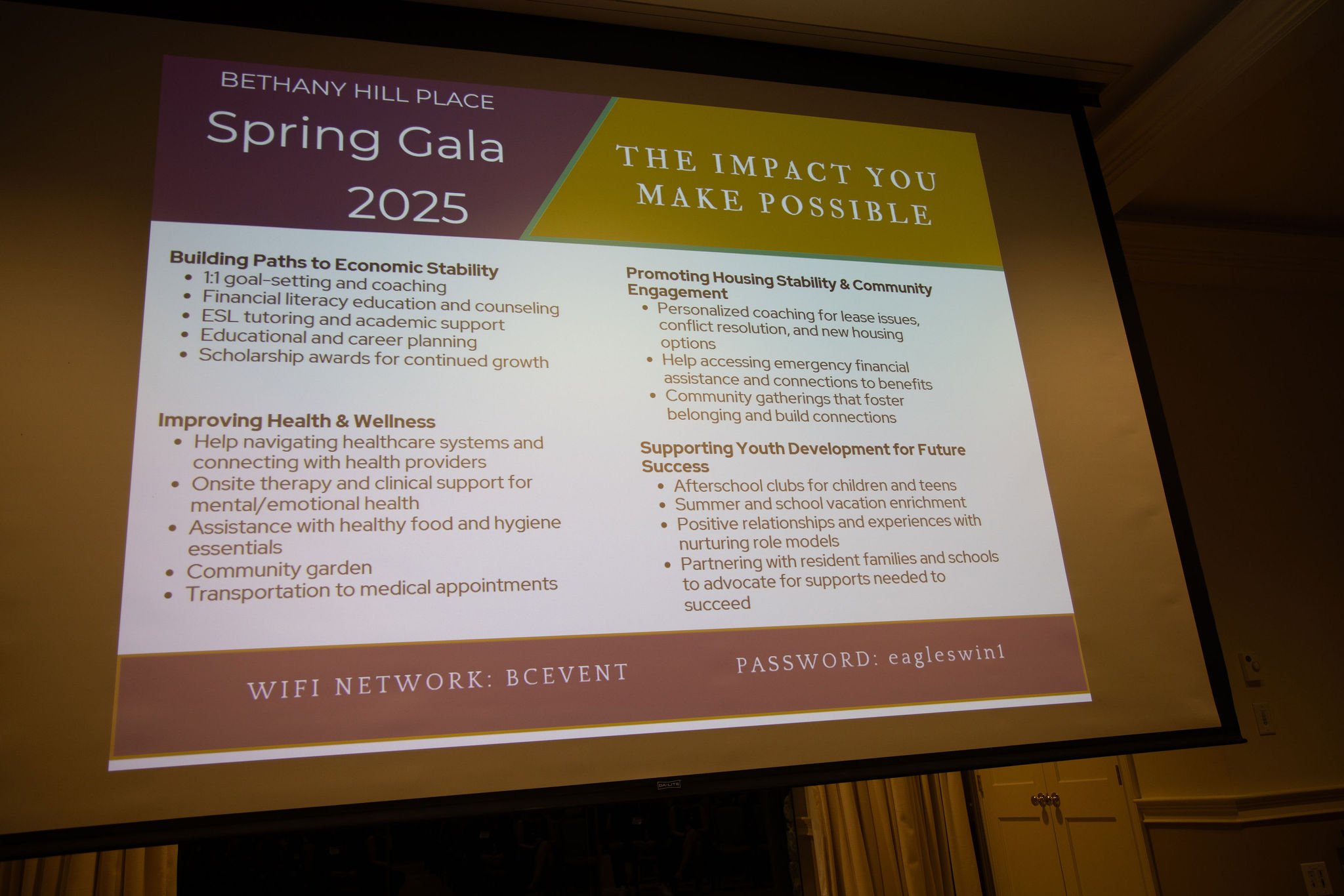 Bethany Hill Place Spring Gala 2025 Dr. Loretta Holloway embraces Malik following her heartfelt introduction, celebrating their bond as mentor and student – and his unwavering pursuit of justice and purpose. Photographs provided by Bob Durling Photography